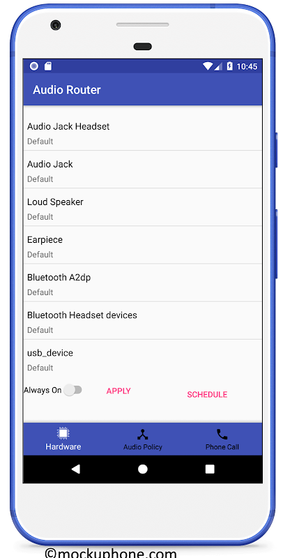Audio Router let you re-route sound like music,in call, system to other hardware,even if hardware is unplugged.