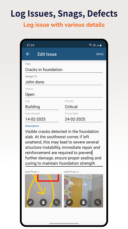 Anda dapat mengelola semua pekerjaan situs Anda seperti melakukan inspeksi keselamatan, menemukan cacat, membuat daftar pekerjaan yang diperlukan, memberikan kutipan, menyiapkan daftar pukulan, daftar halangan, menyiapkan daftar tugas, dan banyak lagi.