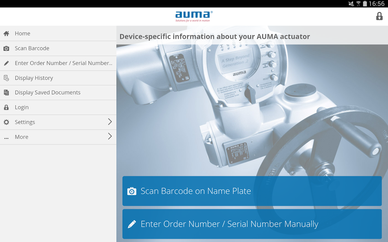 The AUMA Support App allows you to access all documents available relating to your AUMA actuator.