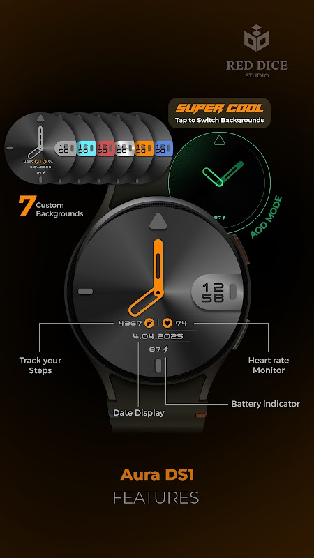 🔹 Tampilan Jam Premium untuk Wear OS – tampilan jam minimalis dengan mode AOD! Dirancang dengan penuh cinta oleh Red Dice Studio