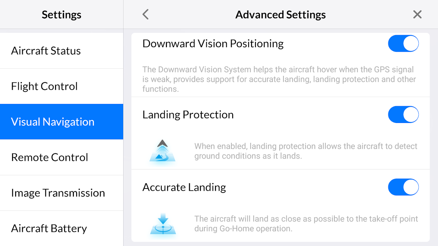 • Upgraded flight safety: Failsafe feature and Low-battery RTH Countdown