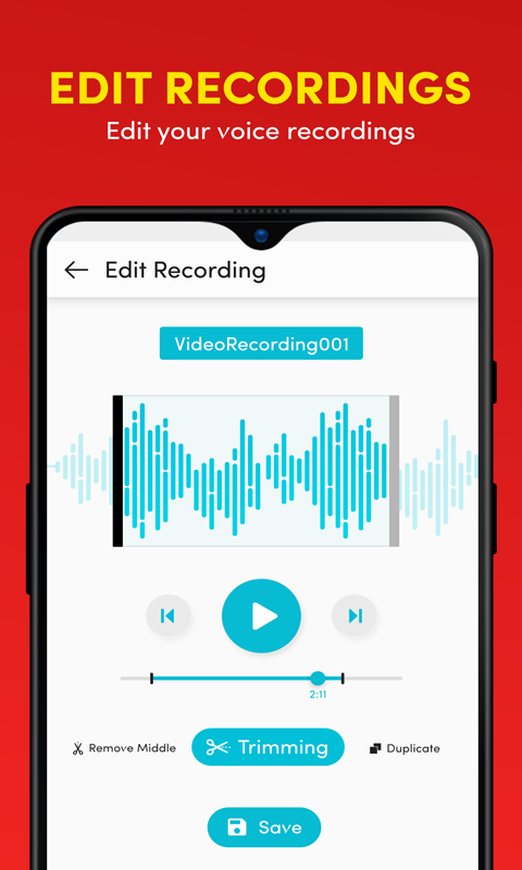 Semua rekaman panggilan otomatis dan rekaman audio dikuratori secara terpisah di dalam galeri audio aplikasi dan pengguna kami memiliki opsi untuk mengganti nama atau mengedit file suara dengan editor audio bawaan. Semua audio dan panggilan disimpan dalam format suara mp3 yang terbaik di dunia.