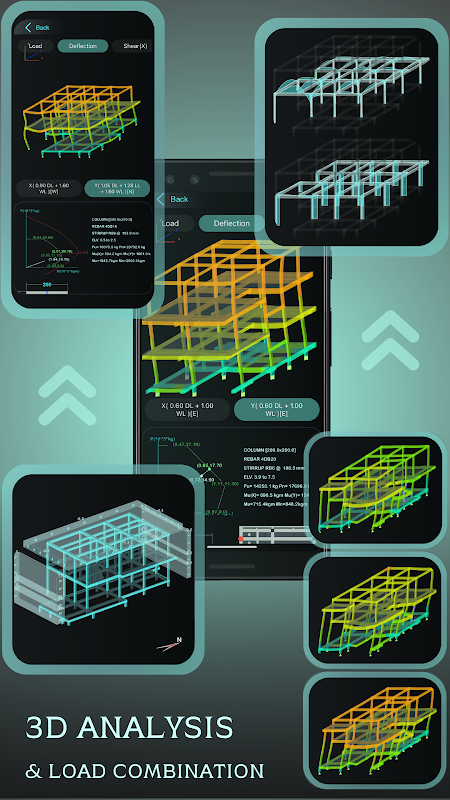 2) Menganalisis dan mendesain elemen struktural secara otomatis (hingga 50 balok per denah)