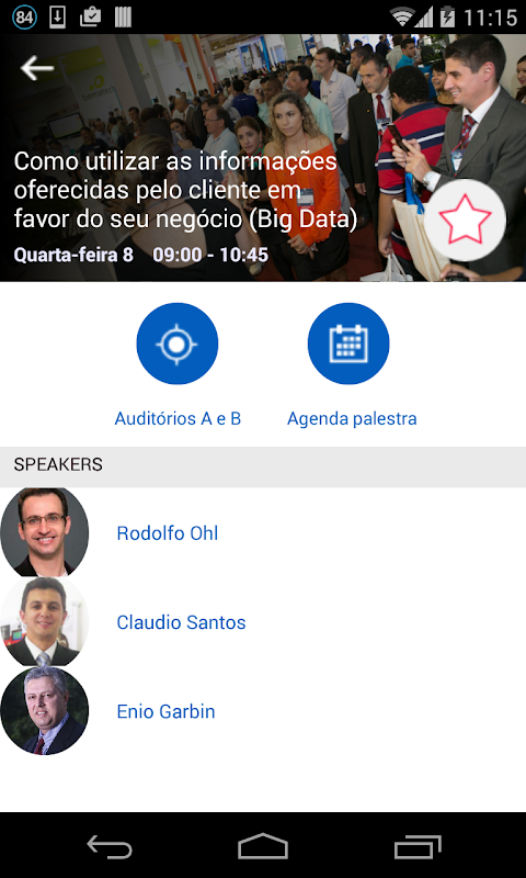 Resumindo o APP temos: planta da feira com localização de cada estande e separados por categoria; programação do Congresso separada por palestrantes e temas; informações gerais da Feira e do Credenciamento.