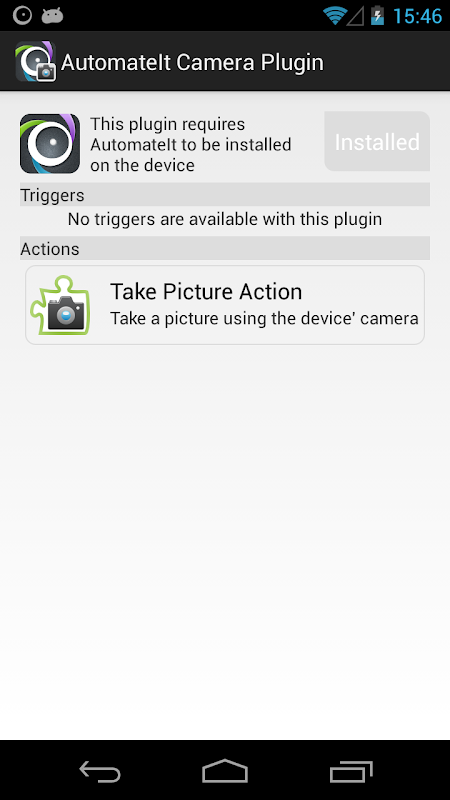 Plugin ini menambahkan tindakan khusus untuk AutomateIt untuk mengambil gambar menggunakan kamera deveice Anda.