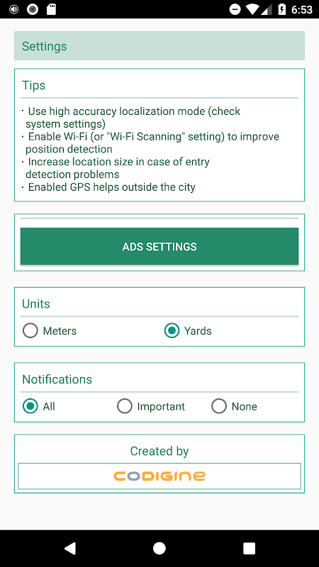 - ACCESS_WIFI_STATE - hanya untuk mendeteksi jika jaringan tersedia dan menampilkan peringatan jika tidak (untuk meningkatkan akurasi lokasi)