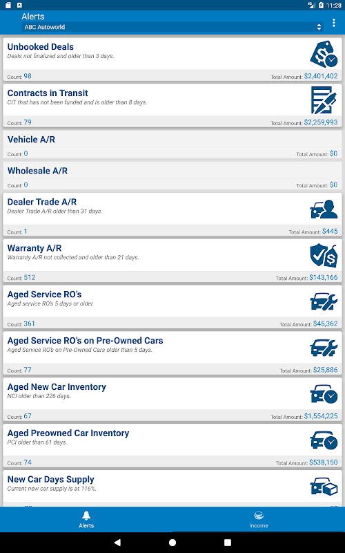 Menampilkan informasi dari segala sesuatu dari Berumur Baru Mobil Inventaris untuk Penawaran unbooked untuk Profit Ringkasan Bulan-to-Date, aplikasi Axcessa mobile adalah alat pelaporan Anda tidak tahu Anda diperlukan.