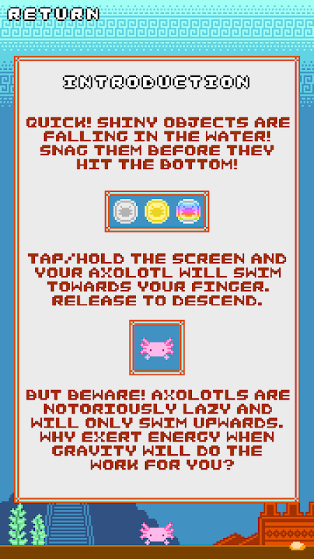A freshwater arcade adventure with everyone's favorite neotenic amphibian. Step into the world of axolotls in this retro-style arcade classic with multiple playable characters, secrets to unlock and hidden collectables to discover!