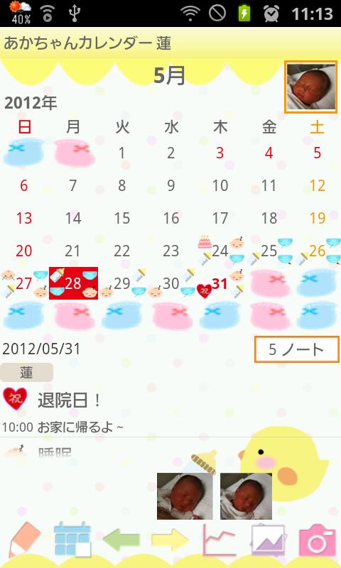 Kalender Bayi adalah aplikasi yang Anda dapat menyimpan catatan pertumbuhan si bayi Anda!