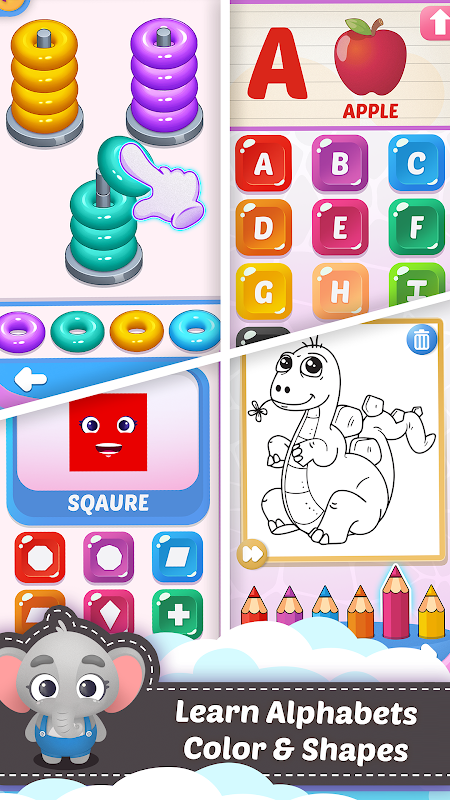 - Pelajari angka, warna, dan bentuk dengan cara yang menyenangkan dan interaktif.