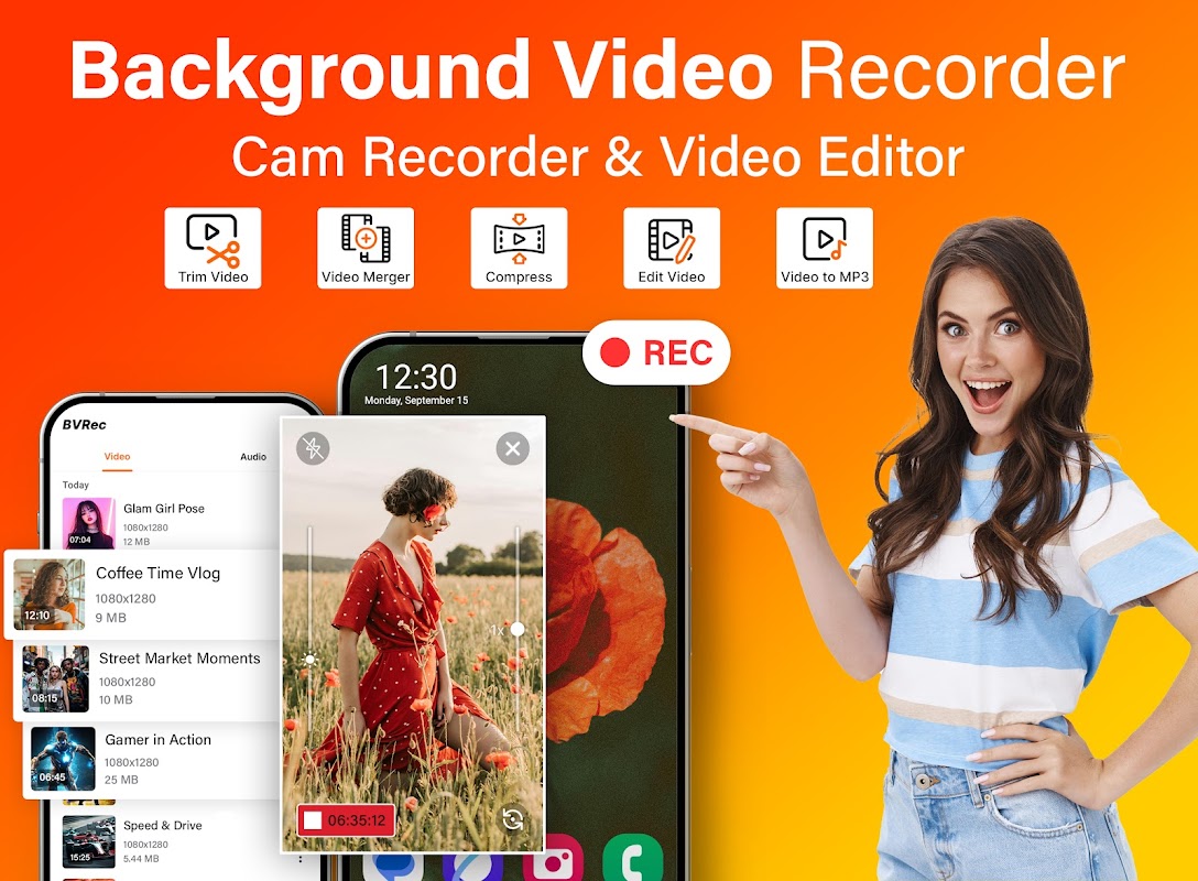 BVRec Pro adalah aplikasi Android yang praktis dan transparan untuk merekam video di latar belakang. Tangkap momen penting seperti kuliah, rapat, atau catatan — bahkan saat Anda menggunakan aplikasi lain atau saat layar mati.