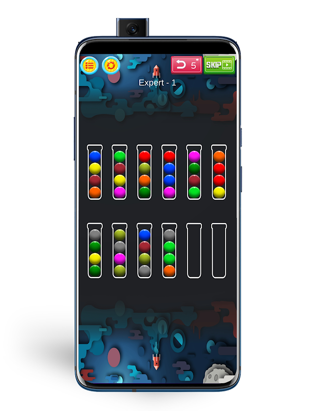 • The rule is that you can only move the ball over another ball if they are the same color and the tube you want to enter has enough space. If not, the ball will be rejected.