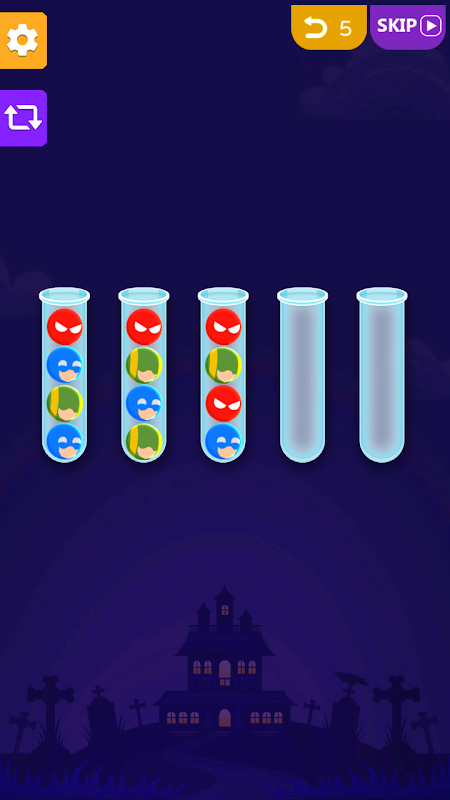 • The rule is that you can only move a ball on top of another ball if both of them have the same color hero and the tube you want to move into has enough space. Otherwise the hero is rejected.
