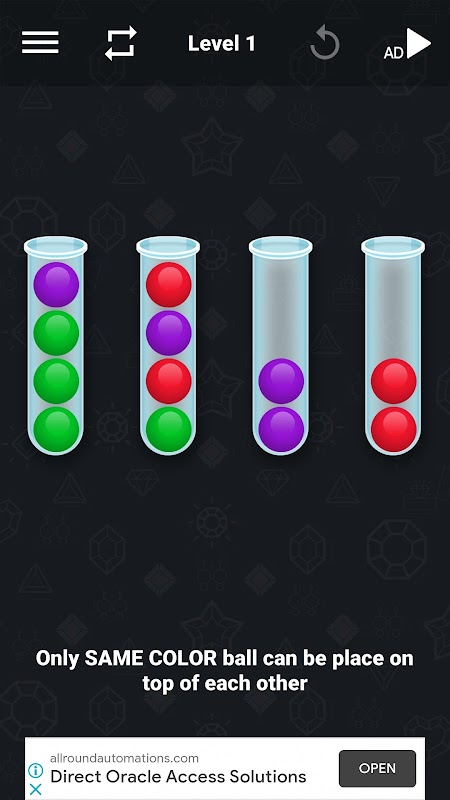 • Tap any tube to move the ball on top in the tube to another tube.