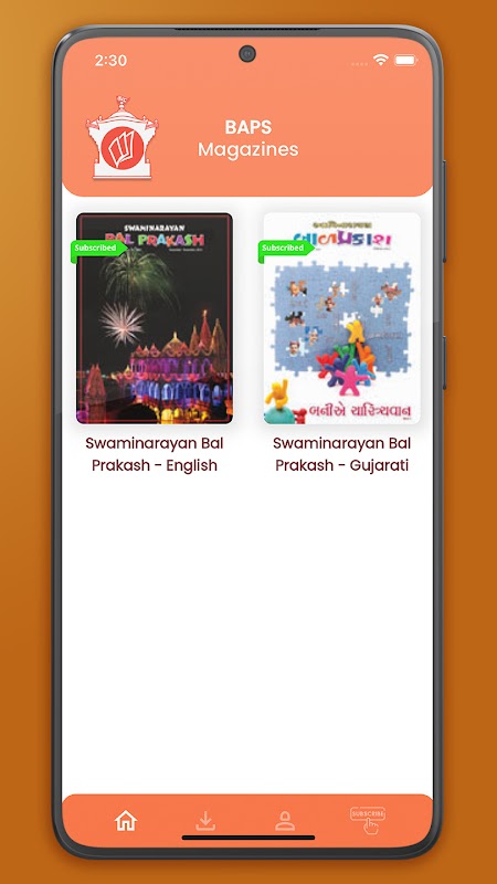 Aplikasi ini mencakup item seperti Swaminarayan Bal Prakash, majalah anak-anak Hindu.
