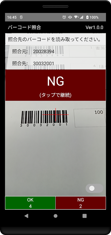 Bandingkan barcode dengan barcode dan tampilkan hasilnya (OK atau NG).