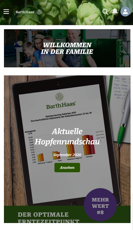 Schnell, einfach, digital: Die BarthHaas PflanzerApp ist die Schnittstelle für eine noch bessere Zusammenarbeit mit unseren Hopfenpflanzern. So haben Sie die wichtigsten Hopfen-Infos, Dokumente und Kontakte immer in der Hosentasche: