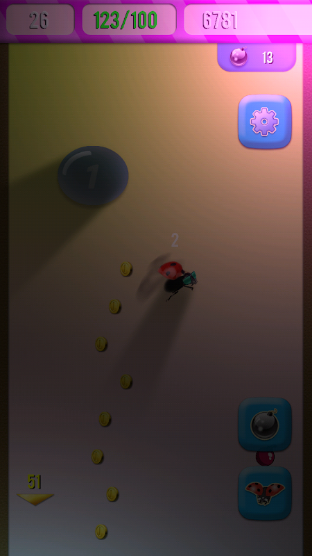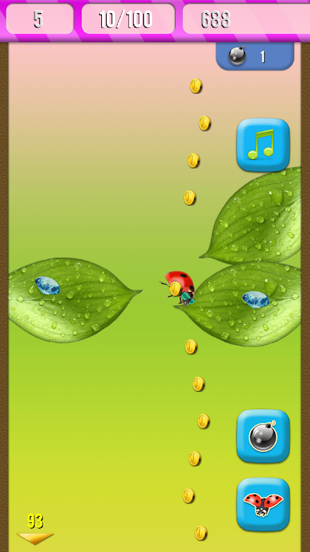 Kumpulkan semua koin sementara jatuh bebas dengan ladybug dasar melompat!