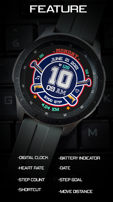 Tampilan jam Sporty Look untuk jam tangan pintar Wear OS.