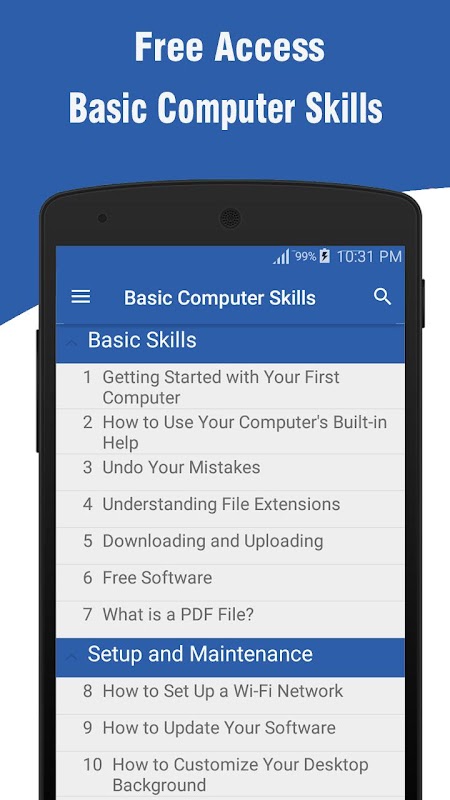 Aplikasi ini akan memandu Anda melalui fitur Keterampilan Komputer Dasar untuk membantu Anda dengan mudah mempelajari komputer dan Berlatih kapan saja.