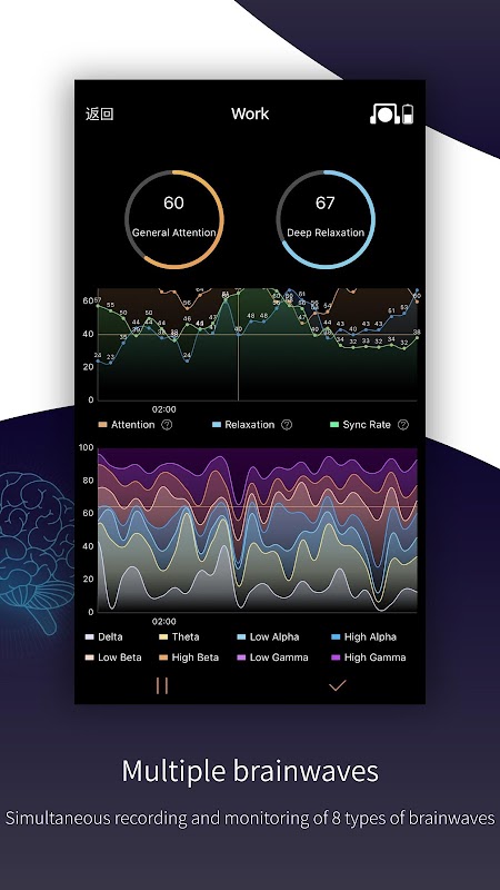 Deteksi dasar adalah aplikasi yang membantu pengguna untuk merekam dan menyimpan data gelombang otak real-time, juga dapat menampilkan Delta yang paling penting, Theta, Alpha, Beta, Gamma dan 8 jenis frekuensi gelombang otak lainnya. Apakah Anda sedang belajar, bekerja, atau ingin merekam keadaan penuh perhatian / rileks saat melakukan hal-hal tertentu, Anda dapat menggunakannya untuk merekam gelombang otak Anda secara real time, sehingga dapat membantu Anda melakukan penyesuaian dan peningkatan. Tidak hanya itu, ia juga dapat mengatur perbandingan dengan data yang disimpan sehingga Anda dapat memahami perubahan gelombang otak saat Anda berada dalam kondisi yang berbeda. Ini adalah alat perekaman gelombang otak gabungan pengumpulan data gelombang otak, analisis dengan rekaman, yang cocok untuk kerah putih dan siswa untuk merekam fokus dan keadaan santai saat bekerja atau belajar. Aplikasi ini membutuhkan pemakaian perangkat gelombang otak BrainLink headband, dapat mendeteksi gelombang otak mentah di lobus frontal kiri otak Anda.