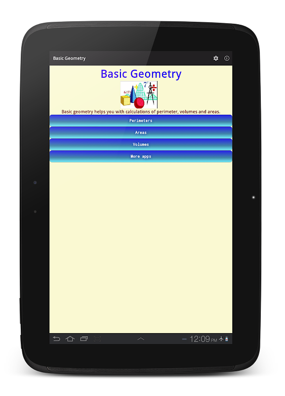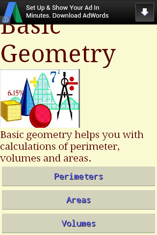 Basic Geometry allows you to perform basic calculations and have at your fingertips the most important equations of Geometry. Ideal for teachers and elementary, middle school students.