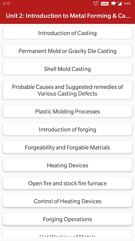 Aplikasi Proses Manufaktur ini memiliki 110 topik dengan catatan rinci, diagram, persamaan, rumus & materi kursus, topik tercantum dalam 5 bab. Aplikasi ini harus dimiliki untuk semua mahasiswa & profesional ilmu teknik.
