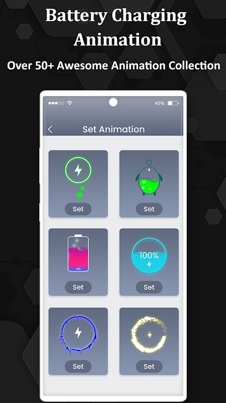 Battery Charging Animation menyediakan cara cepat dan mudah untuk membuat layar pengisian baterai yang menakjubkan dengan pengaturan yang disesuaikan. Sekarang mudah untuk menentukan level baterai dengan Animasi Pengisian yang indah.