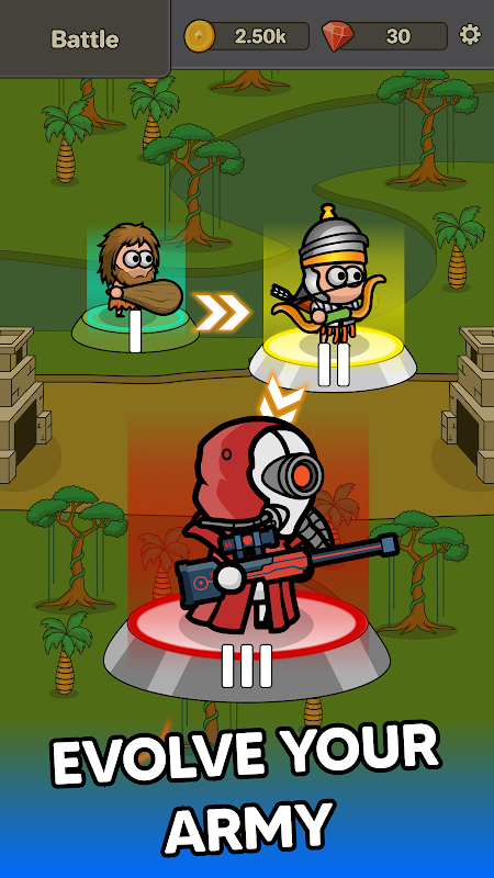 Battle Evolution adalah game strategi terbaik di mana kamu memimpin prajurit tangguh, mengatasi rintangan, dan menaklukkan setiap medan perang. Dari gladiator kuno di Colosseum hingga tank modern, roket, jet, dan prajurit futuristik – jalan menuju dominasi ada di tanganmu.