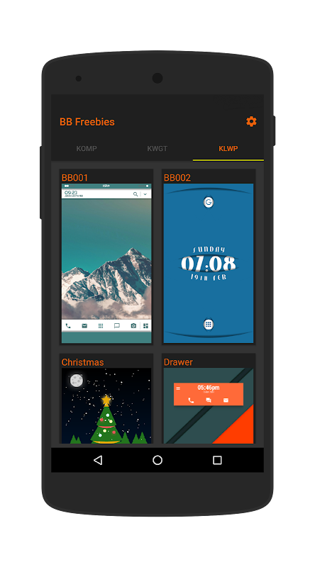 - Buka aplikasi BB Freebies dan pilih salah satu tab 'KOMP', 'KLWP', 'KWGT', 'KLCK' atau 'WALLS'