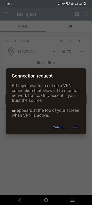 BD INJECT adalah klien VPN terowongan (All in One) dengan header permintaan vpn terbuka untuk mengamankan penjelajahan