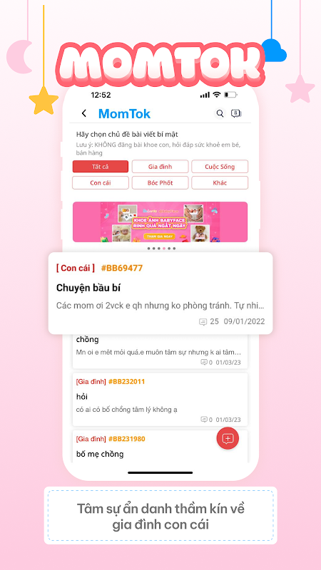 5. Grup obrolan dibagi berdasarkan tempat tinggal, usia ibu, usia anak, masalah yang menjadi perhatian ibu untuk dengan mudah bertukar dan memantau dan bertukar pengalaman.