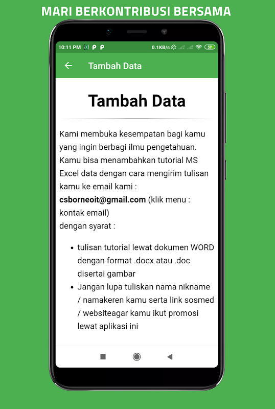 jika kamu punya tutorial MS Excel lainnya terkait perbaikan aplikasi ini kedepannya, kamu bisa mengirimkannya ke email developer cs kami : [email protected]