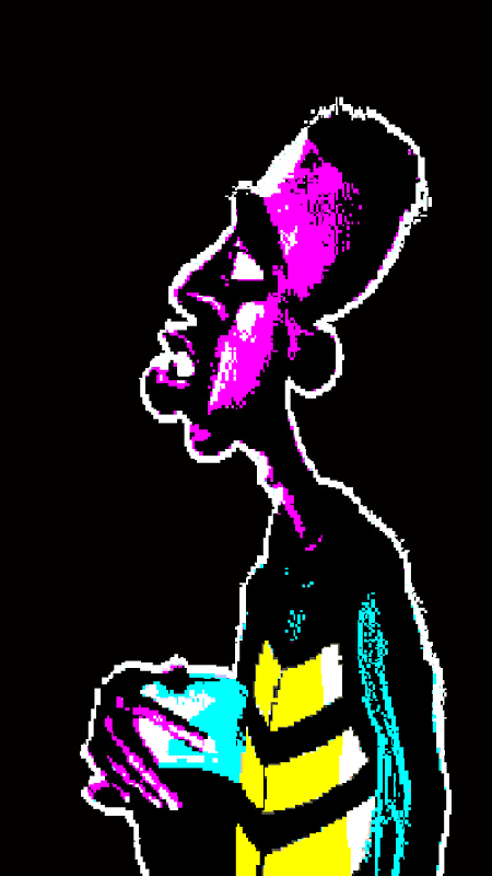 BCB uses the same eight-color limit that the hardware the 80’s allowed back then. Each character is monochrome and heavily pixilated to trigger the nostalgia of the target audience.