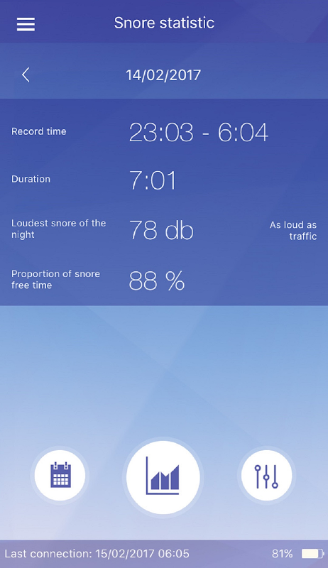 Menyatakan perang terhadap mendengkur dengan Beurer mendengkur stopper dan BEURER bebas SleepQuiet aplikasi. Aplikasi ini memungkinkan Anda untuk melakukan analisis rinci perilaku mendengkur Anda, membantu Anda untuk mengurangi itu. Menggunakan fungsi buku harian, Anda dapat mendeteksi dan menghilangkan kemungkinan penyebab mendengkur. Sebuah representasi grafis menunjukkan sekilas jumlah dengkuran per jam serta volume mendengkur paling keras pada malam hari. malam tidak lebih tanpa tidur.
