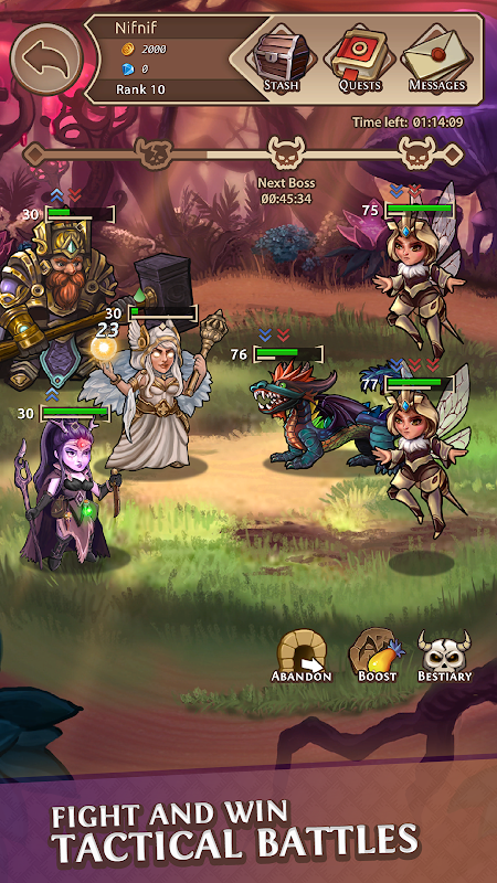 RPG idle dengan pertempuran taktis, ruang bawah tanah epik, dan PvP