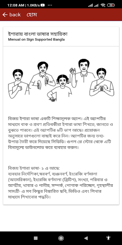 এই অ্যাপটির মাধ্যমে বাক ও শ্রবণ প্রতিবন্ধীরা ইশারা ইশারা ভাষা শিখতে ও বুঝতে পারবে