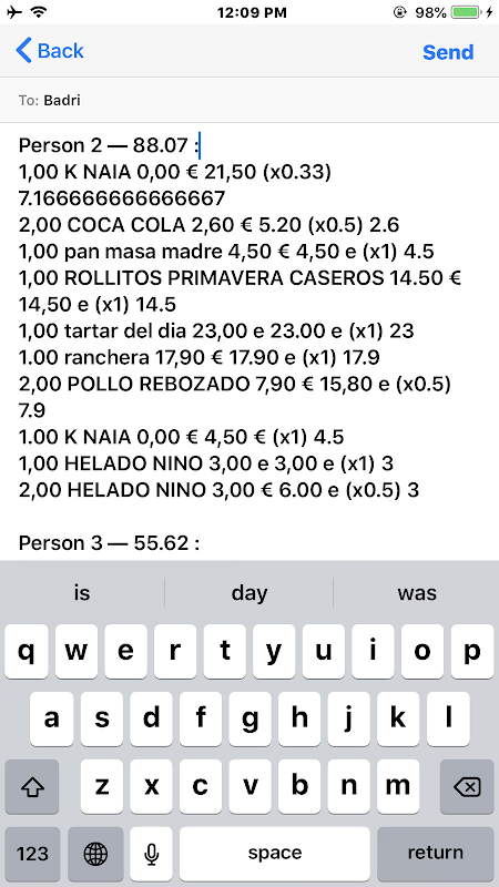 Take a photo of the bill and the app automatically detects all the items on it, all you need to do is to split them.