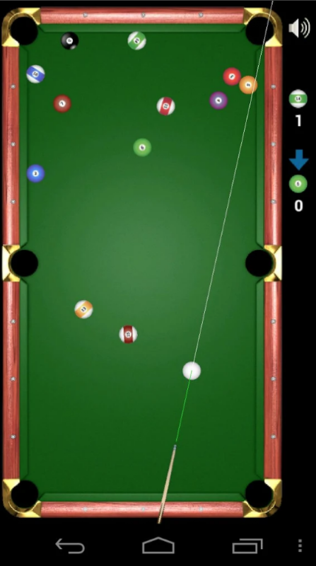 Play a round of 8-ball pool with realistic physics simulation. Large screen area. Touch to aim and shoot the white ball. The strength of the shot is proportional to how far you are touching behind the white ball.