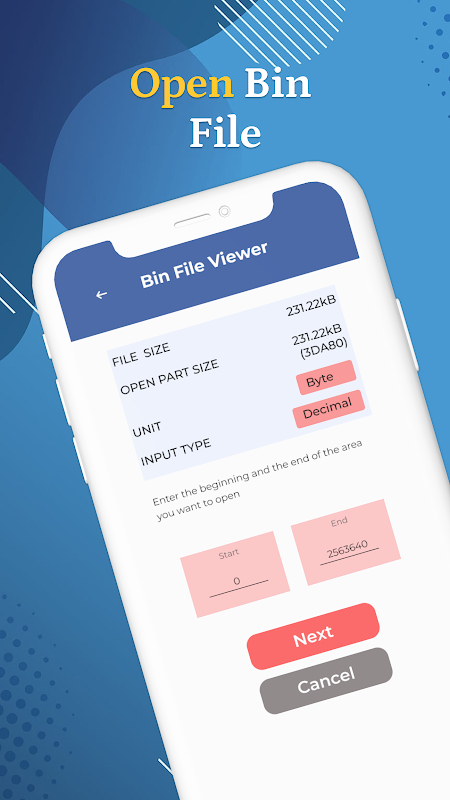 Siapa pun yang perlu melihat dan membaca file biner di perangkat selulernya dapat menggunakan aplikasi Android "Buka File Bin - Penampil dan Pembaca File Bin". Kami menawarkan pembuka file bin untuk android secara gratis dan bekerja dengan berbagai perangkat Android. Buka kapasitas File Bin untuk membuka dan membaca sejumlah format file biner menggunakan pembuka file video bin ini: penampil file biner. Ini menjadikan aplikasi alat yang berguna untuk pengembang perangkat lunak, administrator sistem, dan staf dukungan teknis yang perlu melihat konten file biner dan dokumen bin. Saat Anda memilih file biner untuk dibuka, aplikasi menyajikan kontennya dengan jelas dan rapi. Bergantung pada kebutuhan Anda, Anda dapat melihat file sesuai pilihan Anda. Penampil format bin - Buka File Bin menawarkan berbagai fitur bermanfaat selain memungkinkan pengguna untuk melihat konten file biner. pembuka file bin untuk android: Bin Viewer mudah untuk menemukan informasi spesifik dalam file biner besar. Anda dapat melihat file biner di aplikasi saat Anda cukup memilih file dan Bin File Opener: Bin Viewer akan secara otomatis mengonversi file menjadi file kode biner. Pengguna pembuka bin: aplikasi penampil bin dapat membuka file bin yang dibuat sebelumnya dari ponsel cerdas mereka. Dengan aplikasi terbuka bin ini: aplikasi pembuka file biner, Anda dapat dengan cepat membuka lokasi mana pun di ponsel tempat file bin Anda berada.