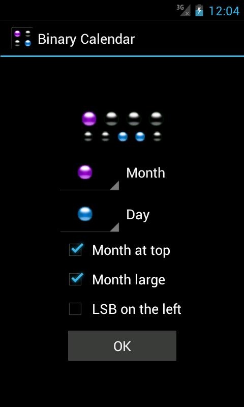 Sebuah widget yang menampilkan tanggal saat ini dalam format biner menggunakan LED berwarna-warni.