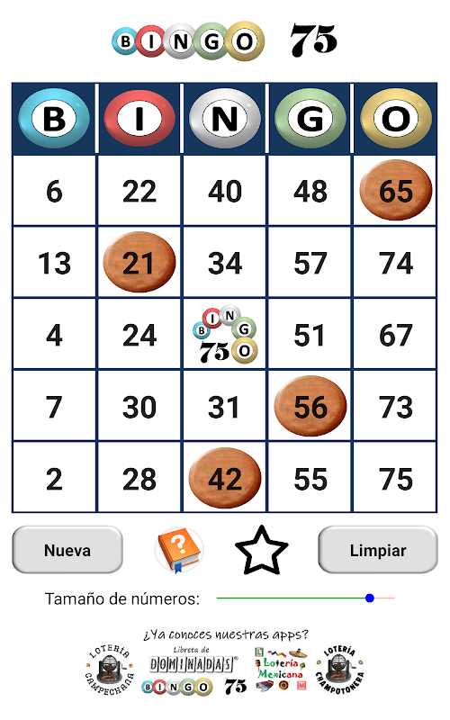 Agregamos la opción de ajustar el "Tamaño de los números" en los módulos "BINGO" y "Plantilla", para mejorar la experiencia de uso.