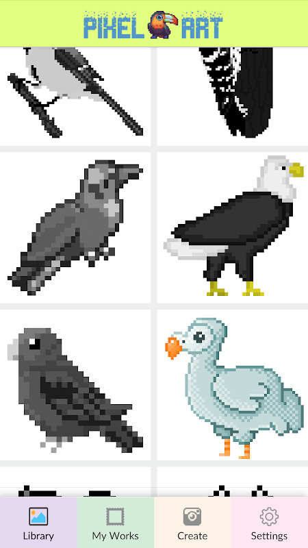 This bird color by number book is the best free bird color by number for adults and kids on Android. Every fan of birds will love this cool pixel art bird coloring game.