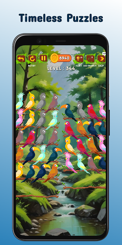 🌿 Tambahkan Cabang Ekstra: Tambahkan cabang tambahan secara strategis untuk membantumu menyortir burung dan menyelesaikan level.