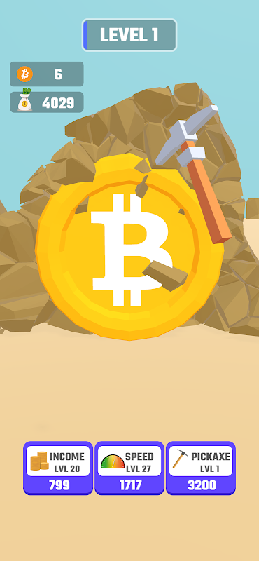 Mulailah perjalanan Anda dengan beliung dasar dan ketuk untuk mendapatkan beberapa Satoshi pertama Anda. Saat menambang, Anda akan mengumpulkan Bitcoin, yang kemudian dapat Anda investasikan kembali untuk meningkatkan peralatan penambangan Anda. Setiap peningkatan akan meningkatkan efisiensi Anda, memungkinkan Anda untuk menghancurkan bebatuan keras kepala itu lebih cepat dan meraup lebih banyak kripto.