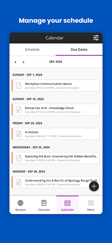 - Urus Kerja Kursus: Lengkapkan dan serahkan tugasan dengan mudah, ambil ujian dan jejaki kemajuan anda.