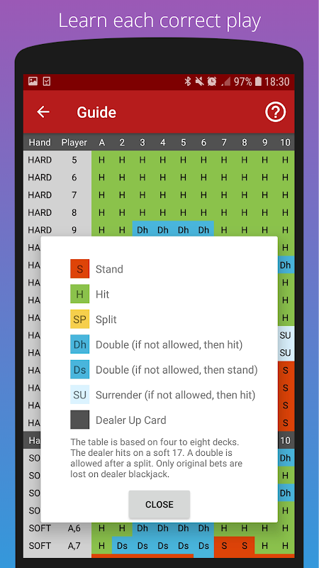 Aplikasi Blackjack Basic Strategy Trainer adalah cara tercepat untuk mempelajari Strategi Dasar untuk Blackjack.