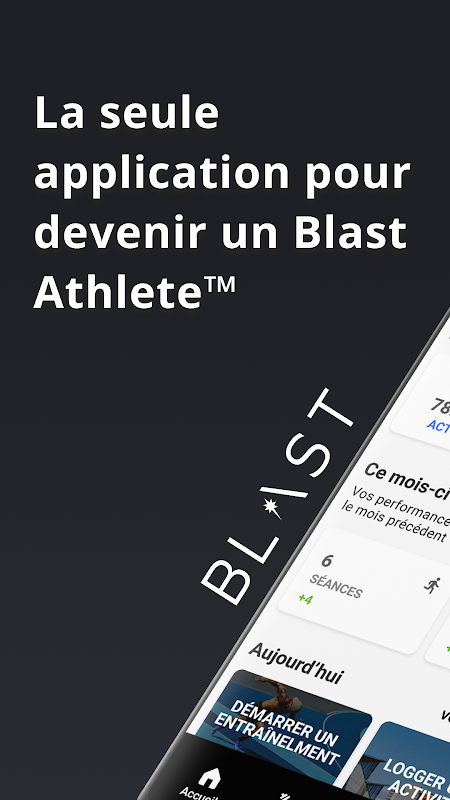 Blast Athletic adalah aplikasi lengkap yang menggabungkan pelatihan (binaraga, pelatihan silang, video) dan nutrisi.