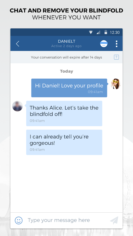 3. In your private chat room, click the “Blindfold” button once you feel comfortable. When both parties have clicked, your pictures will be revealed.