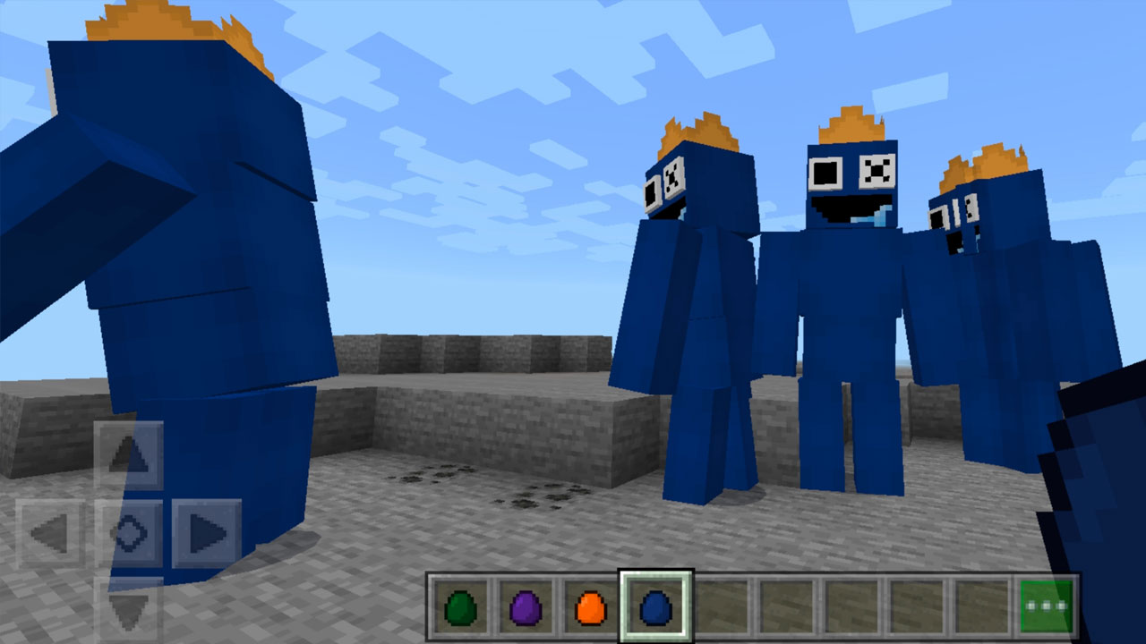 Monster biru adalah mod yang menarik untuk mcpe. Dapatkan telur dan buat monster biru di mcpe. Tersedia empat monster biru: biru, oranye, ungu, dan hijau. Mainkan MCPE dengan monster biru. Buat kotak dan sembunyikan dari monster imut ini. Panggil teman Anda, buat monster, dan mulai mainkan game menyenangkan ini.